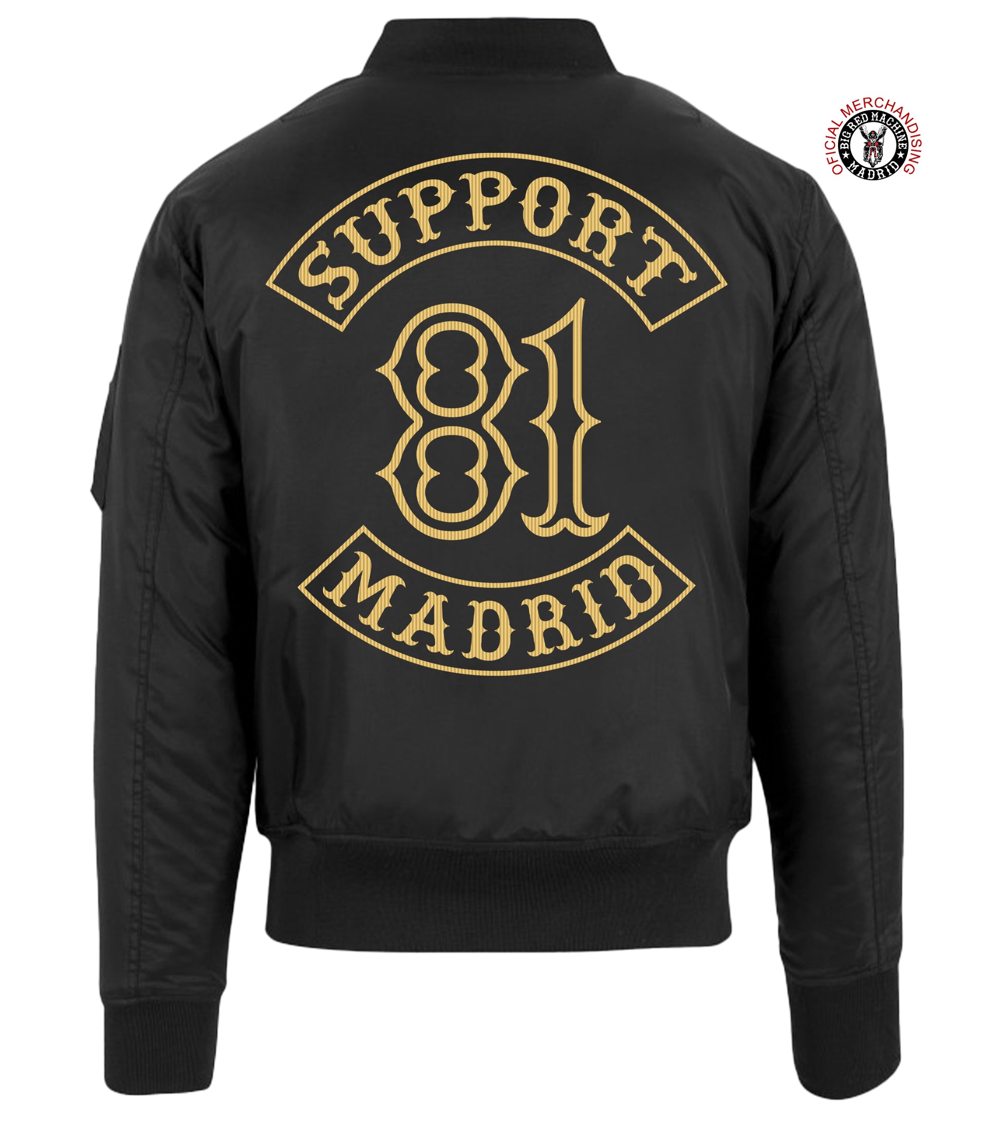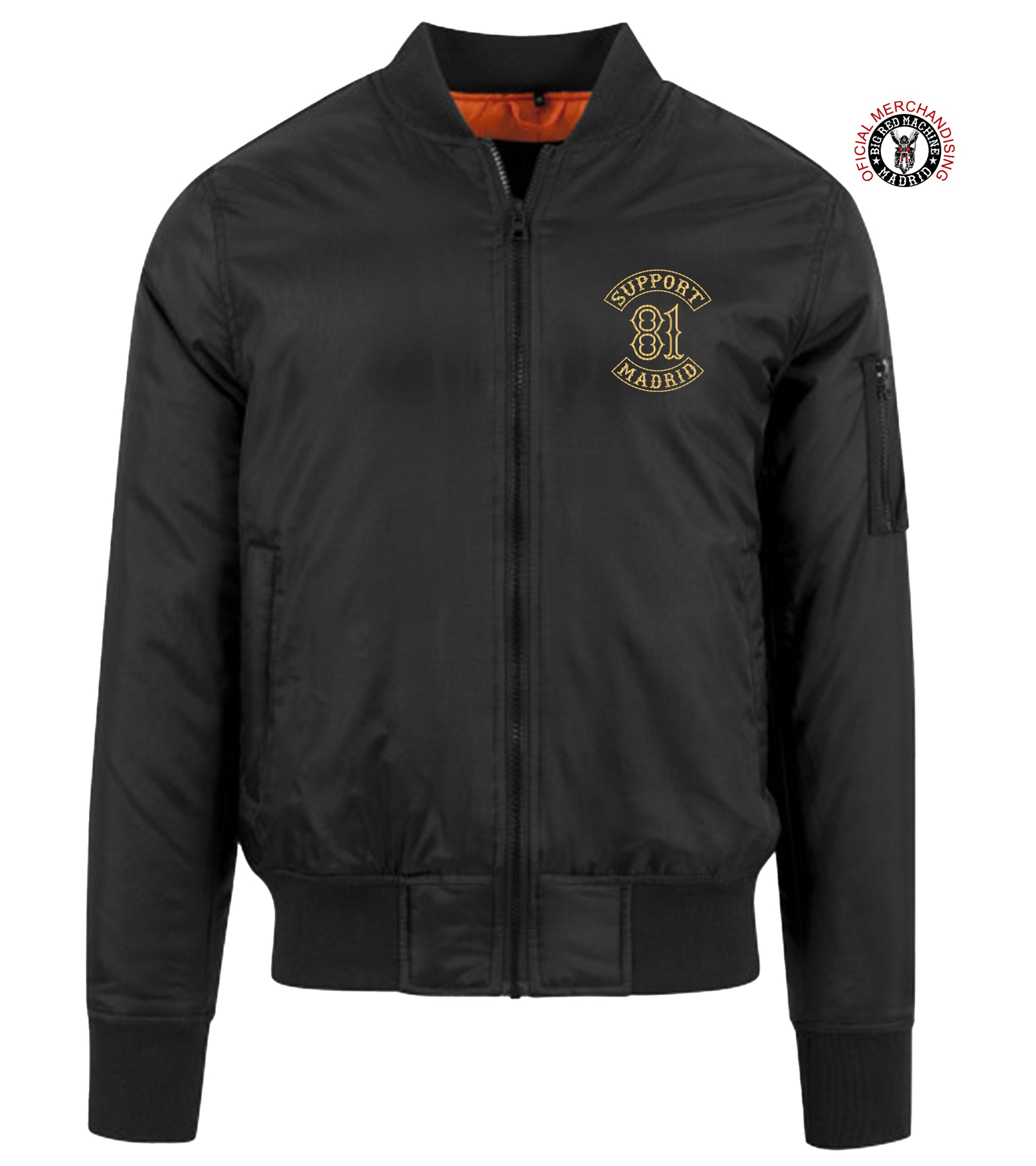 Cada chaqueta está cuidadosamente bordada con puntadas de alta densidad para garantizar un color duradero y una larga duración. El bordado oro champagne de Support 81 resalta con fuerza sobre el fondo negro intenso para una apariencia impactante. Aparte el interior de la bomber es naranjo y el bordado no se va a ver ya como es bordado fuera del foro.