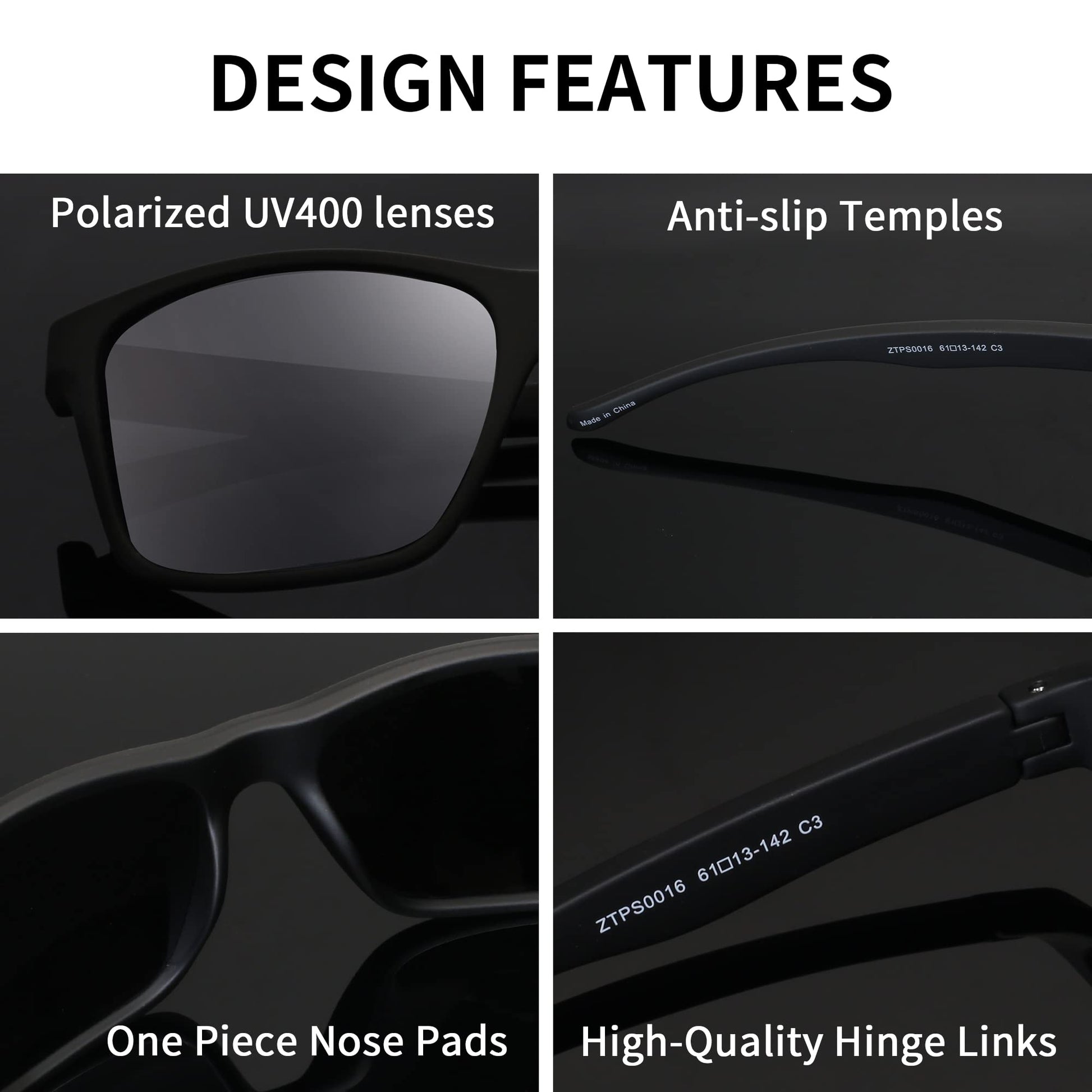 - Piernas del Diseño Anti-Deslizante - Estas gafas de sol polarizadas para hombre tienen la goma en el templo que le ofrece un excelente rendimiento antideslizante